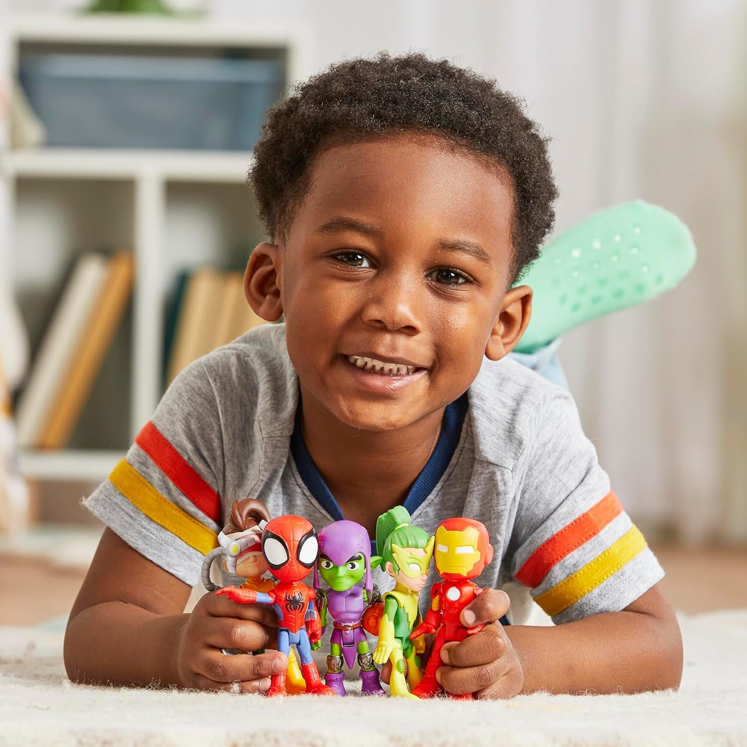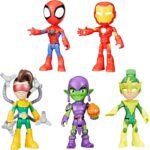 Enter Spidey’s colorful world full of adventure with this Spidey and His Amazing Friends Friends & Foes Pack! This set of 4-inch (10.16 cm) poseable action figures features 5 familiar characters, including Spidey, Iron Man, Green Goblin, Electro, and Dock Ock. With 5 Spidey toy figures on hand, kids are encouraged to create their own stories and to let their big imaginations soar. Boys and girls ages 3 and up can have hours of fun by tuning in to watch Spidey and His Amazing Friends while following along with their own playtime adventures! The Friends & Foes Pack makes a great collectible Marvel gift for kids, but can be gifted as party favors or prizes, too! Kids can look out for more action figures, playsets, and vehicles to build out their own webtastic world inspired by Spidey and Friends! (Each sold separately. Subject to availability.) Copyright MARVEL. All trademarks and registered trademarks are the property of their respective owners. HASBRO and all related trademarks and logos are trademarks of Hasbro, Inc.